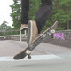 Tracking shot of unrecognizable man freestyling on skateboard doing flip
