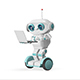 3D Animation Robot with Laptop with Alpha Channel looped Video on a Transparent Background