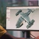 Black man using computer and creating 3D model of futuristic aircraft for videogame or movie while working from home