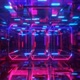 3d object or structure rotates and moves inside glass mirror tunnel with neon light, bright reflections. Fantastic abstract background looped in 4k. Vj loop for show. Night club vj loop