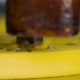 3d printer printing objects yellow form closeup. Modern technical 3D printing.
