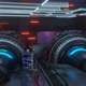 3d render concept. Suits in a spaceship. Cryochamber with control devices. Nebulae and stars. Spaceship interior for long-distance travel