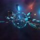 3d render. Spaceships fly into space for a long journey, leave the artificial station. Next to the star is a blue dwarf. Seamless loop.