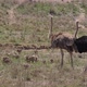 Ostrich, struthio camelus, Male, Female and Chicks walking through Savannah, Nairobi National Park in Kenya, Real Time 4K