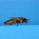 European Honey Bee, apis mellifera, Black Queen walking against Blue Background, Bee Hive in Normandy, Real Time 4K