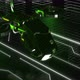 Virtual Computer World in the Digital strings. The drone is Flying Through the Space filled with digital string. Data Shapes are created by the digital strings are reflecting on the Drone. Graphics.