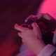 A girl plays computer games. Game console. Game controller. Gamepad in the hands. Gaming.
