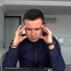 A qualified human programmer develops application software, meanwhile he uses a laptop and notebook for accounting. Handsome Mature businessman sends e-mail using the net-book