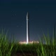 a rocket taking off from a launch pad or a silo in an open field animation on the theme of space or a military threat