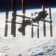 A view of the Earth and a spaceship. International space station is orbiting the Earth