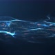 Abstract digital blue color wave with flowing small particles dance motion on wave and light abstract background. Cyber or technology background.
