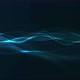 Abstract digital blue color wave with flowing small particles dance motion on wave and light abstract background. Cyber or technology background.