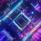 Abstract frames and boxes. Fly through technology cyberspace with neon glow. Sci-fi flight through hi-tech technology tunnel. Hologram and neon light. 3d looped seamless 4k background. Data flow.