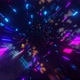 Abstract frames and boxes. Fly through technology cyberspace with neon glow. Sci-fi flight through hi-tech technology tunnel. Hologram and neon light. 3d looped seamless 4k background. Data flow.