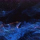 Abstract particle waves with depth of field effect. Futuristic 3d illustration. Technology concept. Cyber UI, HUD element. 4k 60 fps