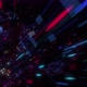 Abstract technology big data cloud computing background with bright neon lines and dots. Flying in Digital Cyber City Particles HUD. floating circuits. Seamless loop, 3D render