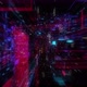Abstract technology big data cloud computing background with bright neon lines and dots. Flying in Digital Cyber City Particles HUD. floating circuits. Seamless loop, 3D render