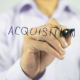 Man, Businessman, entrepreneur, stock trader, analyst or banker writes on transparent wall : Acquisition