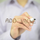 Man, Businessman, entrepreneur, stock trader, analyst or banker writes on transparent wall : Add Value
