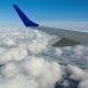 Above the clouds, view through an airplane window