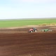 4K Aerial Elevated View.Tractor Plowing Field. Beginning Of Agricultural Spring Season. Cultivator Pulled By A Tractor In Countryside Rural Field Landscape. Cinematic Shot.