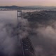 aerial hyperlapse video of Fatih Sultan Mehmet Bridge on a foggy day in Istanbul, Turkey. 2rd Bosphorus Bridge and Turkish Flag