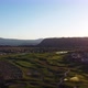 Aerial jib drone flying over the cliff over the sunset. Sunset view of the Ledges golf course in St. George, Utah. Outside snow canyon state park.