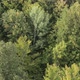 Aerial view of trees in the forest. Vertical video. Ukraine