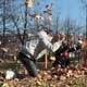 Group of cheerful schoolchildren throwing leaves up in the air and laughing