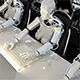 Robots of the future work in offices on computers. Loopable.