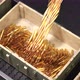 Seamless animation of the opened wooden military boxes. Ammunition is falling into the crates standing on the conveyor belt. Equipment prepared for an upcoming conflict. Ammo factory.