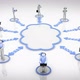 Animation representing the cloud computing concept, every character is connected through a technological device to the cloud. White and Cyan. Last 15 seconds are loopable. More colors available.