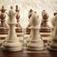 Close up on the wooden chess pieces standing on the shiny chessboard. Overview of the game figures just before the battle start. Chess strategy requires intelligent planning few moves forward.