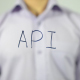 Man, engineer, writes on transparent screen ” application programming interface ( API )