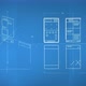 Animation showing the process of building wireframes for an app or website with great detail from four different perspectives in a stylized blueprint format.