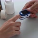 Apparatus for measuring oxygen saturation and pulse. The doctor measures the patient’s oxygen saturation and pulse during illness by putting a pulse oximeter on his finger. Top view