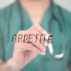 doctor, patient, nurse or Man writes and draws on transparent wall : Appetite