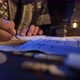 History scene. Write a letter. Tumbled papers. Arabic script text.