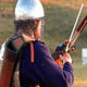 Medieval warrior practices his archery at the target. This weapon was widely raspostraneno in the Middle Ages, and every soldier was great to use.