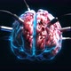 Artificial Intelligence. frontal image of the brain with different dachiks connected to it transmitting or receiving data signals.