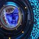 Anthropomorphic face consist of bits of information . 3D animation
