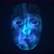 AI Artificial Intelligence face scanner. Facial recognition and biometric medical research concept. Neural network learning system. Face Detection. Augmented Reality Hologram. Face Id Cyber Security