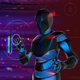Artificial Intelligence animation. Black shining texture 3D robot using touch screen. Use this in motion graphics for corporate videos or as background for events.