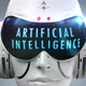 artificial Intelligence. sci fi robot head close-up. the inscription “artificial Intelligence”