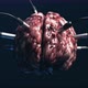 Artificial Intelligence. frontal image of the brain with different dachiks connected to it transmitting or receiving data signals.