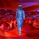 The gait of an astronaut on the red planet in a spacesuit. VJ Loop Animation. 3D Render