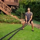 Athletic Male Working Out Using Battle Roles. Crossfit. Slow Motion.