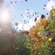 Autumn leaves fall from trees in autumn Park. Autumn colorful Park on a Sunny day.