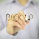Man, Businessman, entrepreneur, freelancer, software engineer, programmer writes on transparent wall : Back Up