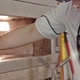 Baker placing baking sheet with bread into oven in restaurant kitchen